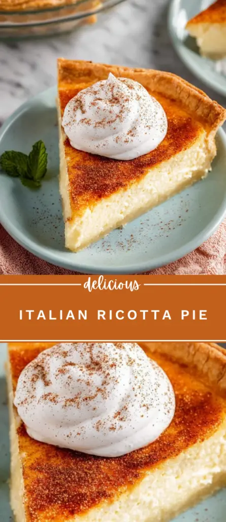 Italian Ricotta Pie is a classic Italian dessert featuring a creamy ricotta filling with lemon and vanilla in a tender, flaky pastry crust. This easy ricotta pie recipe is perfect for holidays, family gatherings, or special occasions. Lightly sweetened and dusted with cinnamon, it pairs well with whipped cream or fresh berries. Homemade Italian Ricotta Pie offers authentic Mediterranean flavors with simple ingredients, making it a standout dessert for entertaining or everyday baking.
