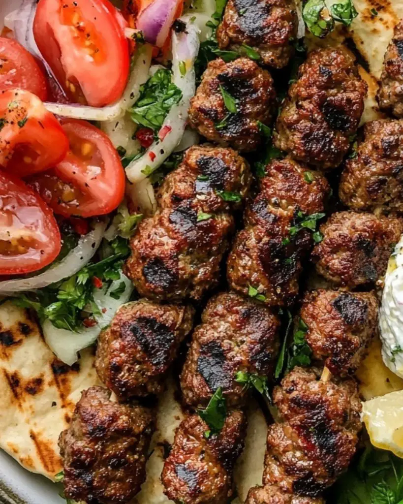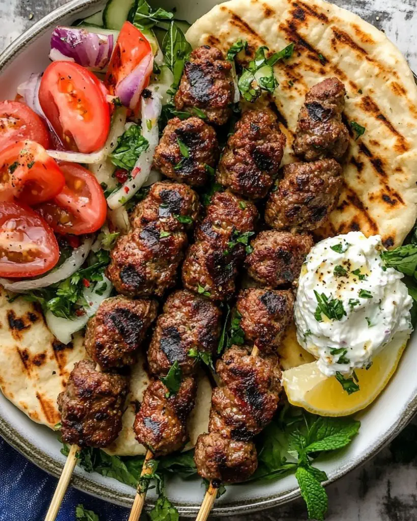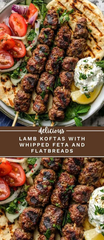 Juicy, spiced lamb koftas served with creamy whipped feta, warm flatbreads, and fresh toppings. This Middle Eastern-inspired dish is packed with flavor and makes a fantastic meal for sharing.