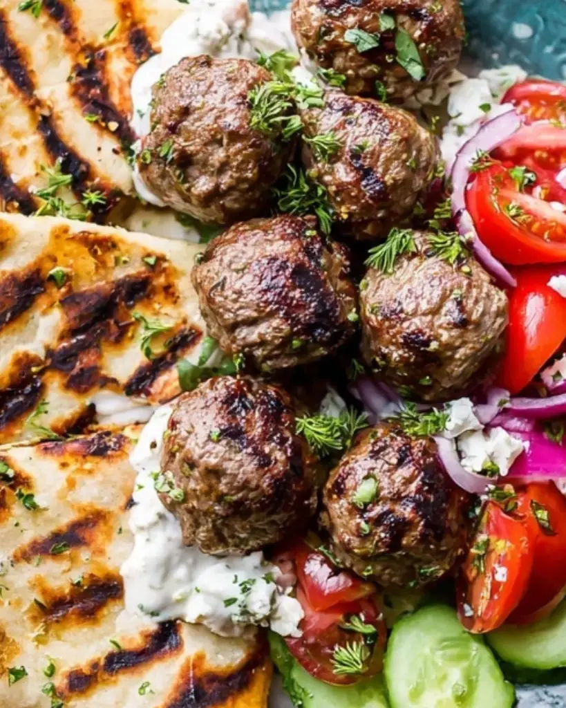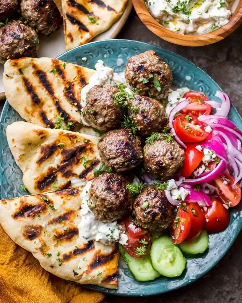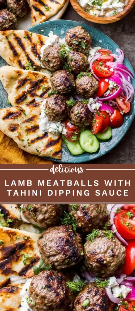 These lamb meatballs with tahini sauce are a flavorful Mediterranean-inspired recipe made with ground lamb, warm spices, garlic, and lemon zest, then grilled until perfectly browned. Served with a creamy tahini dipping sauce, fresh pita bread, and a simple tomato and cucumber salad, this dish works well for weeknight dinners, grilled kebab platters, or mezze spreads. The combination of juicy lamb meatballs, aromatic spices, and smooth tahini sauce creates a balanced and hearty Middle Eastern style meatball recipe that pairs perfectly with fresh herbs and feta cheese.