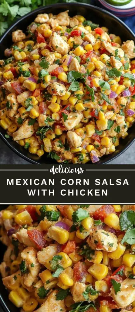 This bold and flavorful Mexican Corn Salsa with Chicken is packed with juicy seasoned chicken, charred corn, fresh veggies, creamy yogurt, and tangy lime. Perfect as a dip with tortilla chips or served as a light meal, it’s a vibrant, protein-rich dish that’s both delicious and satisfying.