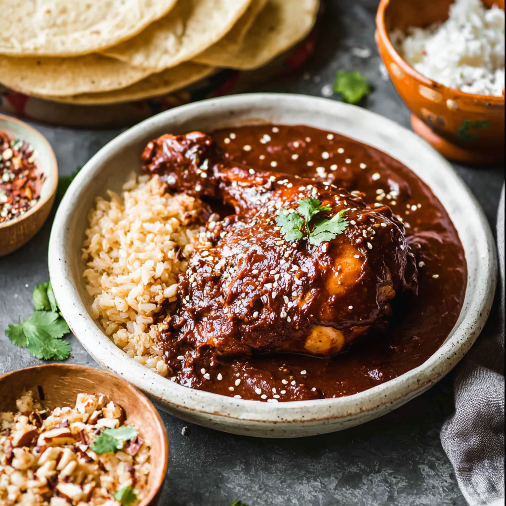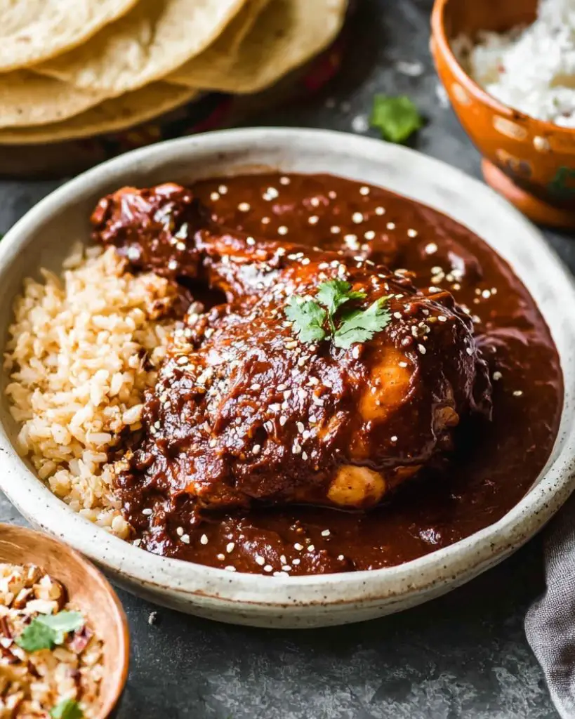 This authentic mole sauce recipe combines dried chiles, spices, nuts, seeds, and Mexican chocolate for a rich, flavorful sauce served over tender chicken. Perfect for family dinners, holidays, or special occasions, this traditional Mexican dish pairs beautifully with rice and warm tortillas.