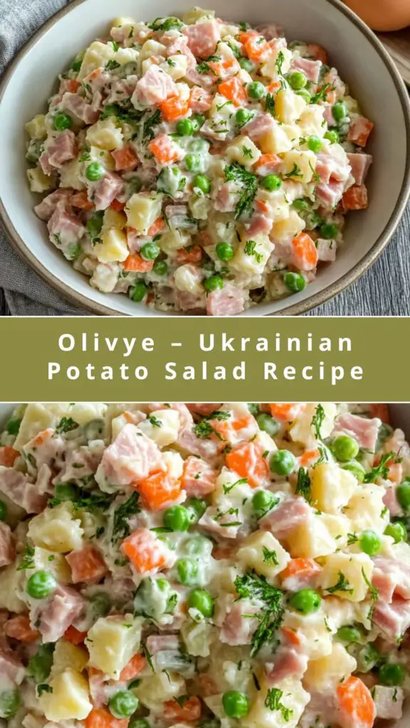Olivye is a beloved Ukrainian potato salad that is both hearty and refreshing. The combination of creamy mayonnaise, crunchy pickles, savory ham, and fresh vegetables creates a delicious and satisfying dish. It’s easy to make, highly customizable, and can be enjoyed as a side or even a main course. Whether for a family gathering, holiday celebration, or casual meal, this salad is sure to be a hit!