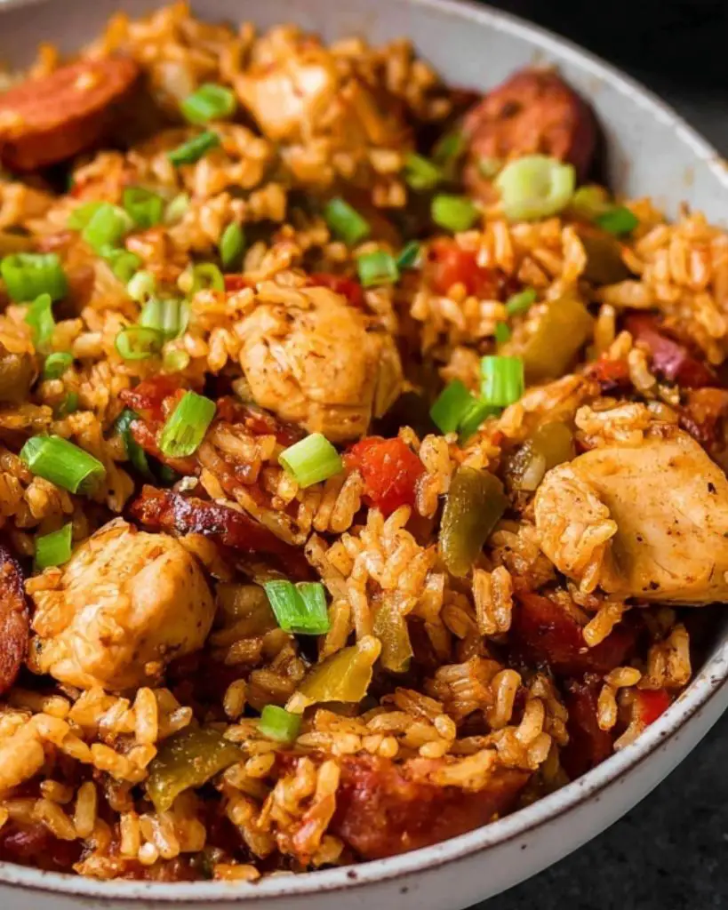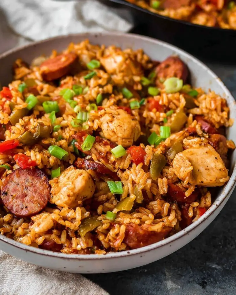 One Pan Jambalaya is a classic Cajun rice dish loaded with tender chicken, smoky andouille sausage, vegetables, and bold spices. This easy homemade jambalaya is cooked in a single skillet for a flavorful family dinner with minimal cleanup. Perfect for weeknights, gatherings, or meal prep, this recipe brings authentic Louisiana flavor to your kitchen.