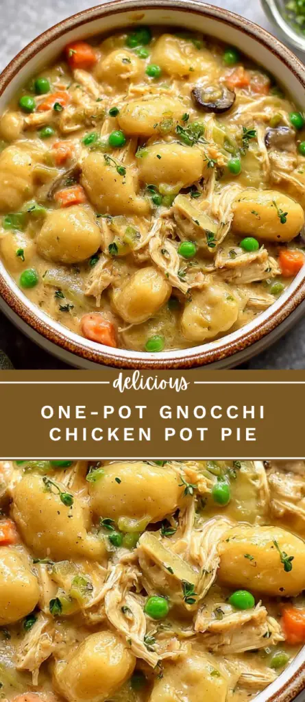 This one-pot gnocchi chicken pot pie is a quick and comforting dinner made with tender vegetables, creamy broth, shredded chicken, and gluten-free gnocchi. Perfect for weeknight meals, cold-weather cooking, and family-friendly recipes, this simple stovetop dish delivers classic pot pie flavor without a crust. Ideal for easy chicken dinners, one-pot meals, and gluten-free comfort food that comes together fast with minimal cleanup.