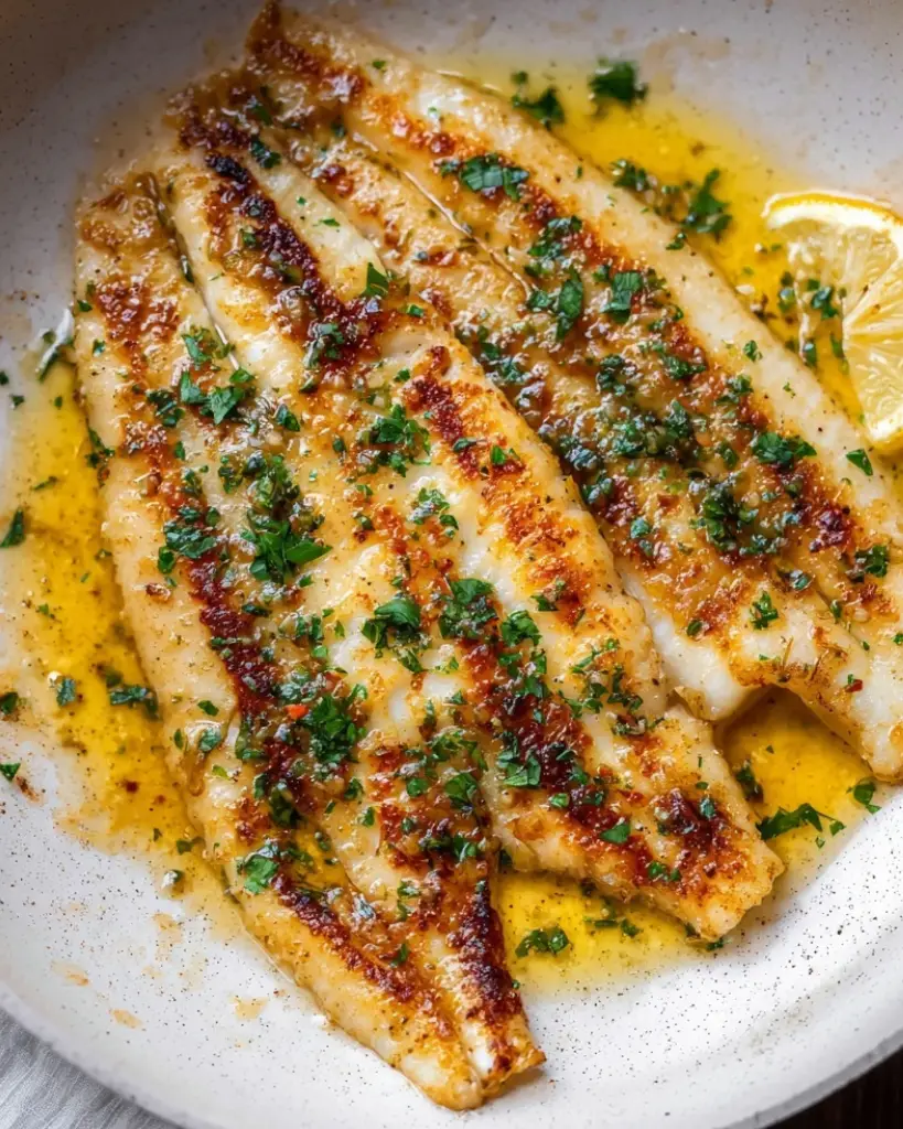 Pan-seared flounder with brown butter and lemon is a quick seafood recipe that highlights tender white fish cooked until golden and finished with a classic beurre noisette sauce. This easy flounder fillet dish is made in one pan using simple ingredients like butter, fresh herbs, and lemon juice, making it ideal for busy weeknights or elegant dinners. Lightly floured fish creates a crisp exterior while staying moist inside, and the lemon butter sauce adds rich flavor without overpowering the delicate texture. Perfect for anyone searching for healthy fish recipes, pan-fried flounder, or easy seafood dinners with fresh lemon and herbs.