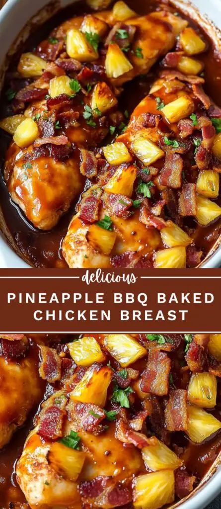 This pineapple BBQ baked chicken breast recipe features tender, oven-baked chicken layered with sweet pineapple, smoky bacon, and rich barbecue sauce. Easy to prepare in one pan and ready in under 30 minutes, this dish is perfect for busy weeknights or meal prep. Combines sweet and tangy flavors with minimal ingredients for a quick family dinner.