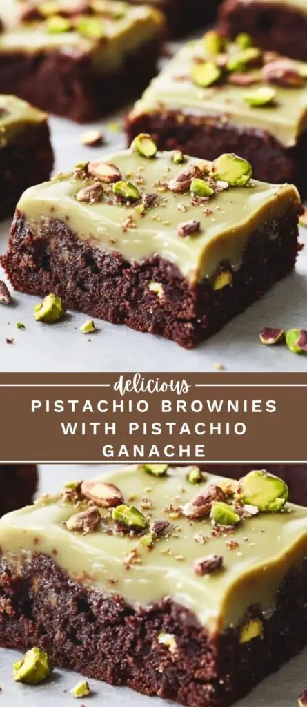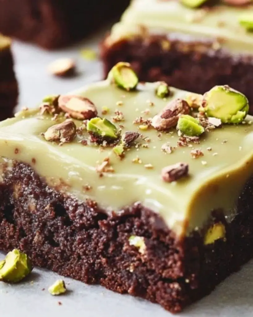 These brownies combine the richness of dark chocolate with the nutty aroma of pistachios, topped with a smooth, creamy pistachio ganache. The balance of textures—chewy, gooey, and creamy—makes them a standout dessert for gatherings, gifts, or when you’re craving something special with a gourmet twist.