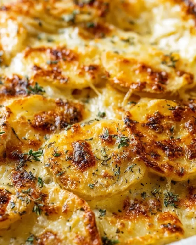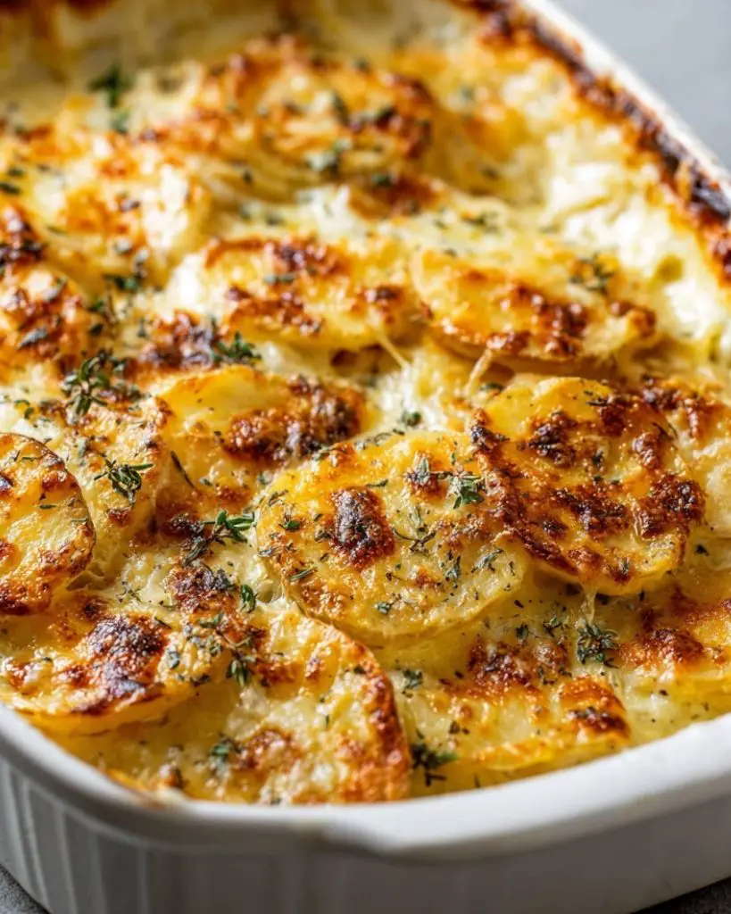 This classic Potatoes Au Gratin recipe features thinly sliced potatoes layered in a rich, creamy cheese sauce made from scratch. With a golden, bubbly top and a perfectly tender interior, it’s a comforting side dish that pairs beautifully with any main course — from roasted meats to holiday feasts.
