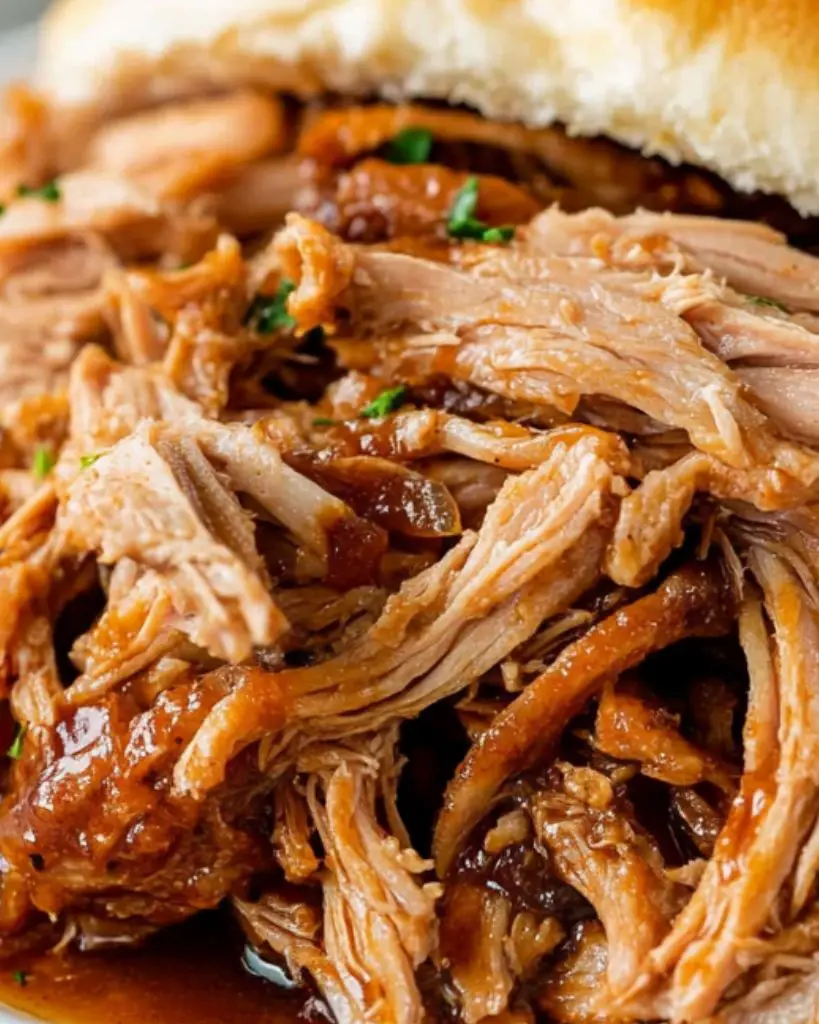 - Drizzle some of the flavorful cooking juices over the shredded pork for extra moisture and taste. Brush with additional warm BBQ sauce before serving.