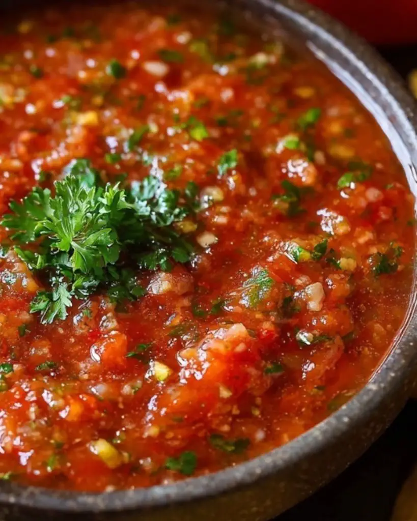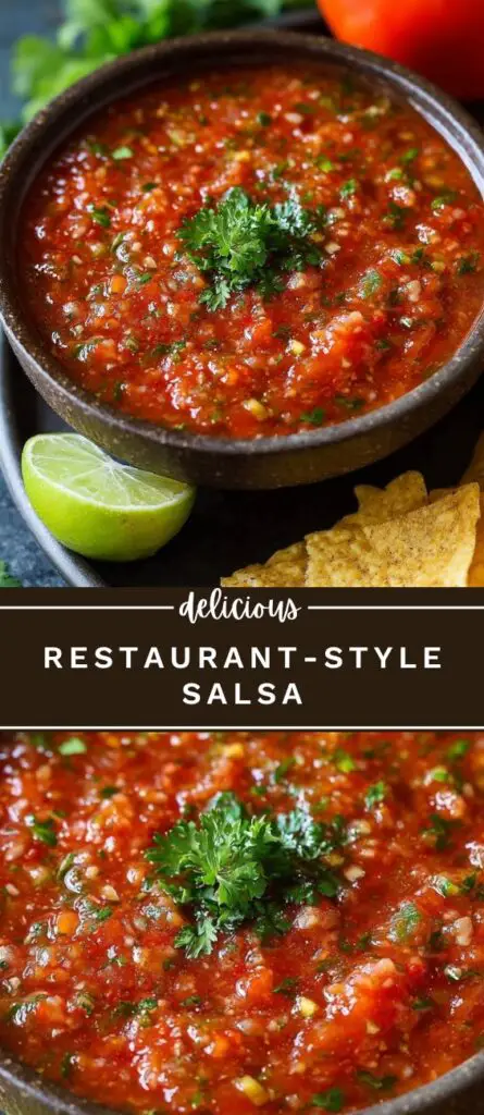 Restaurant-style salsa recipe with fresh tomatoes, cilantro, jalapeño, and lime juice. Smooth or chunky, this homemade salsa is perfect for tacos, chips, burritos, and grilled meats. Refrigerate for enhanced flavor and use as a versatile, flavorful condiment.