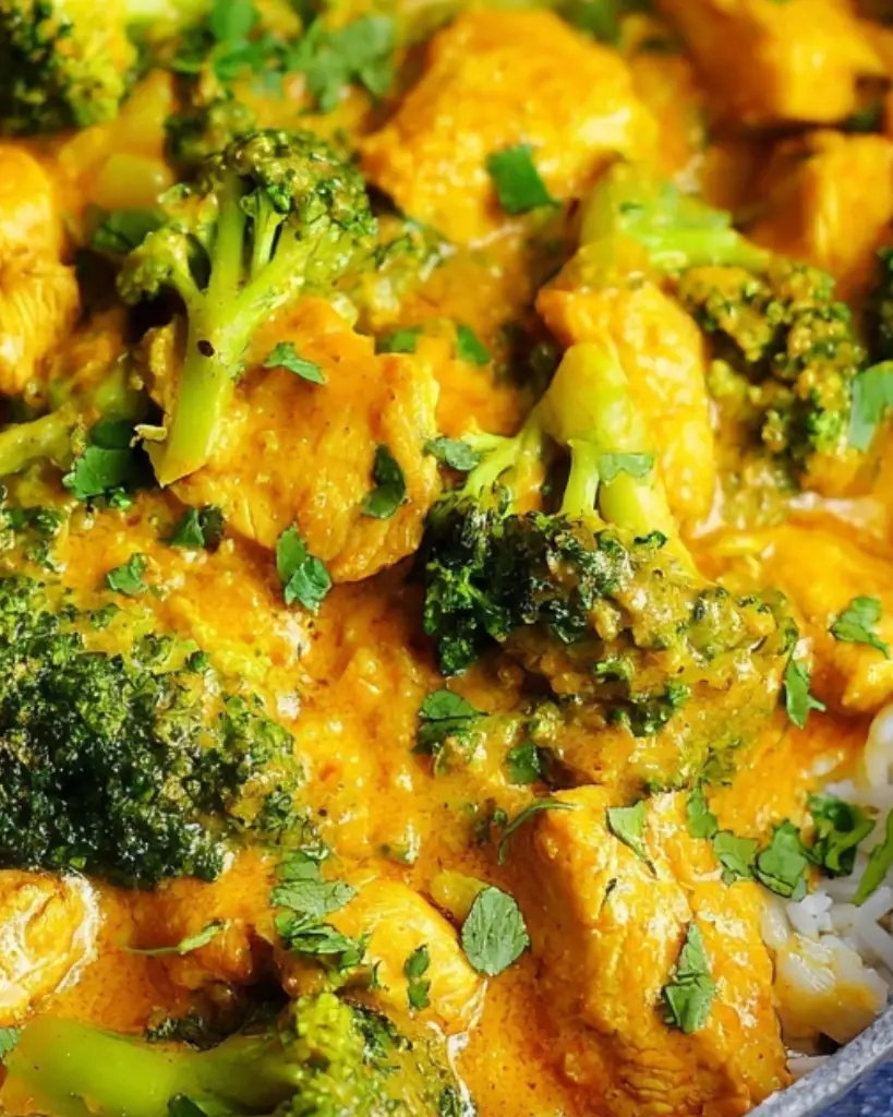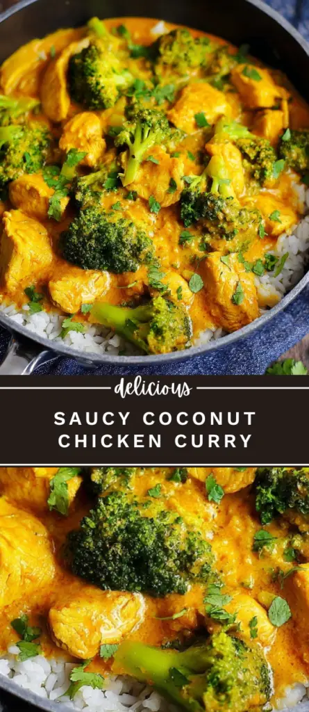 This saucy coconut chicken curry is a quick and flavorful skillet meal made with tender chicken, creamy coconut milk, warm curry spices, and crisp broccoli. Ready in about 30 minutes, it’s a simple weeknight dinner that pairs perfectly with fluffy white rice.