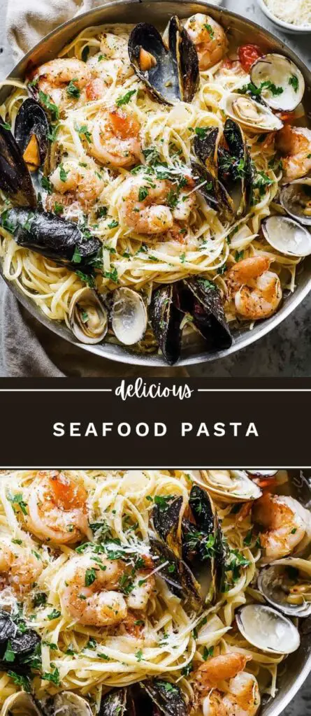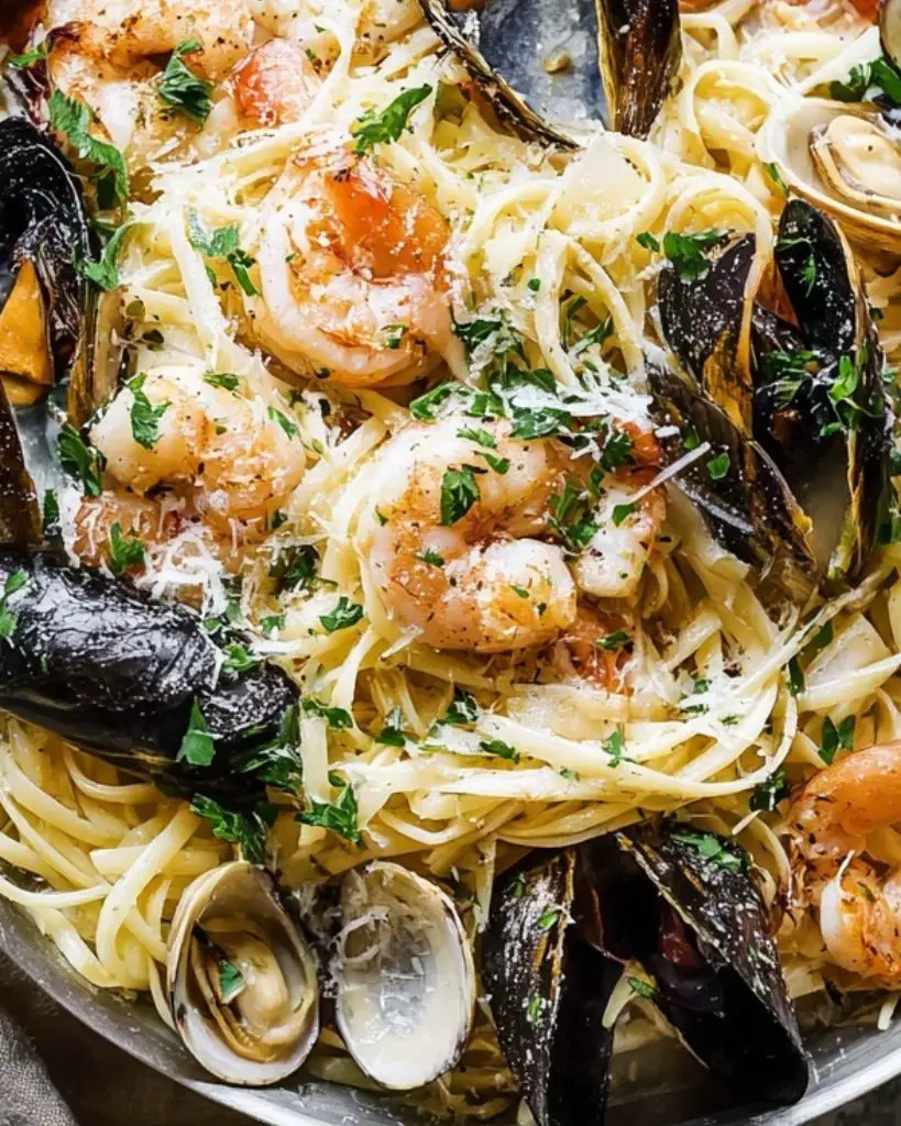 This Seafood Pasta recipe combines shrimp, scallops, mussels, and clams tossed with linguine in a creamy garlic and white wine sauce. Easy to make and full of rich flavor, this restaurant-style seafood pasta is perfect for weeknight dinners or special occasions. Serve it with Parmesan and fresh parsley for a comforting, elegant meal.