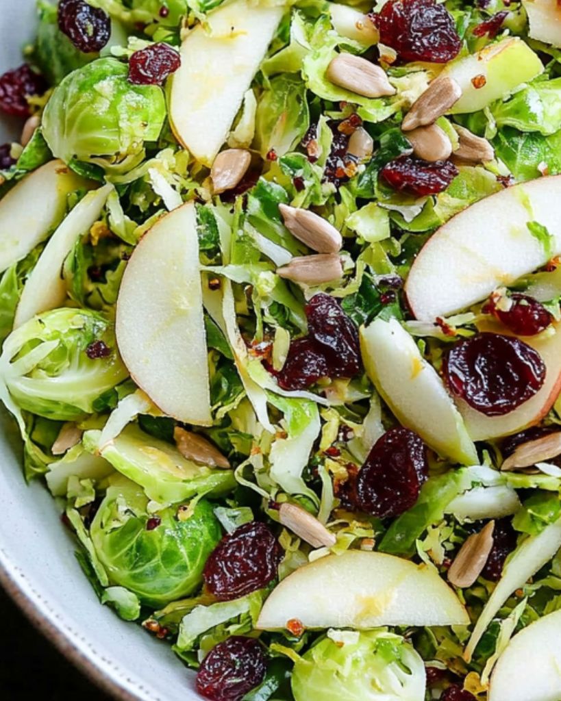 Shaved Brussels Sprout Salad is a fresh, crunchy, and nutritious dish packed with crisp apples, dried cranberries, Parmesan cheese, and toasted sunflower seeds. This easy salad recipe is perfect for meal prep, holiday gatherings, or a healthy side dish. Tossed in a light lemon Dijon dressing, it’s a great gluten-free and vegetarian option that pairs well with any meal.