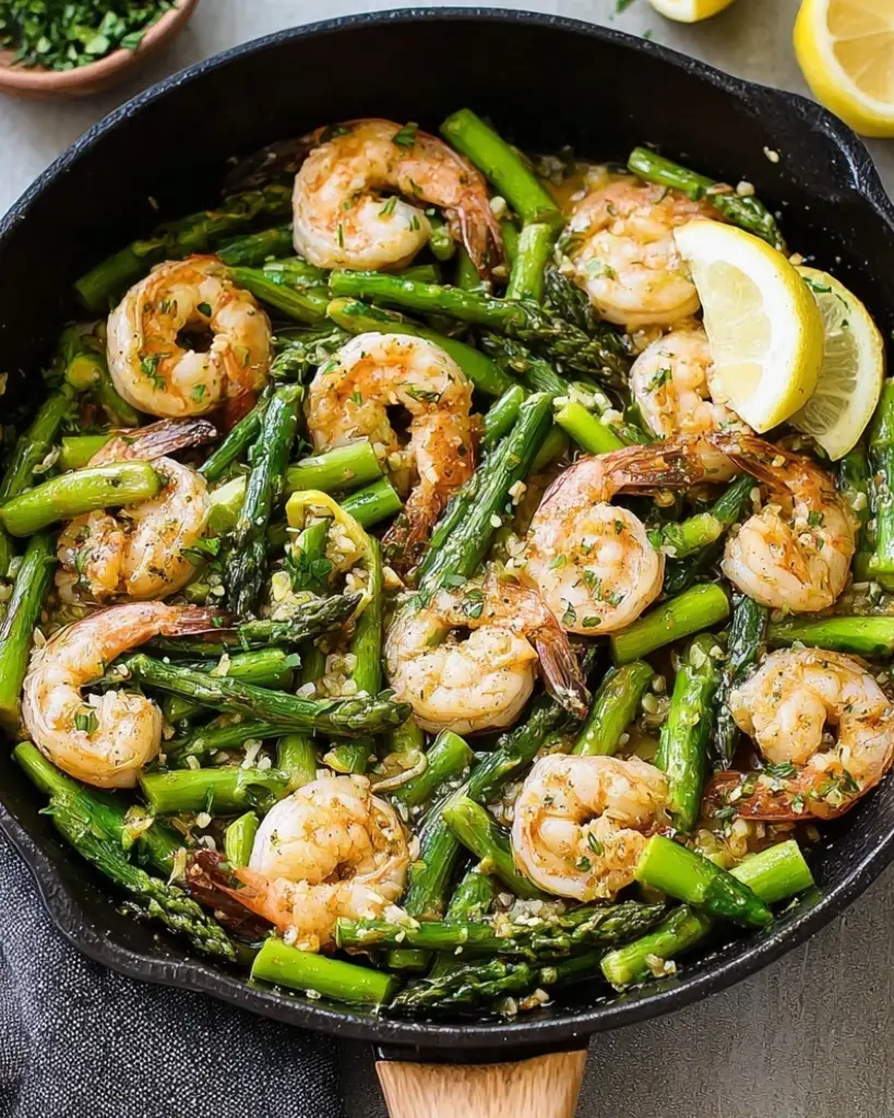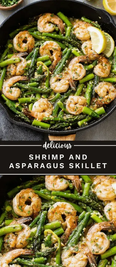 This Shrimp and Asparagus Skillet is a quick and easy one-pan meal featuring jumbo shrimp, tender asparagus, and fresh lemon. Perfect for weeknight dinners, it pairs well with rice, cauliflower rice, or pasta. The recipe highlights simple ingredients, bold seasoning with Old Bay, and a bright garlic-lemon flavor, making it a healthy, gluten-free option that cooks in about 20 minutes.