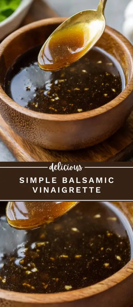 This simple balsamic vinaigrette is made with balsamic vinegar, extra virgin olive oil, Dijon mustard, and fresh garlic for a smooth and well-balanced homemade salad dressing. Perfect for green salads, roasted vegetables, and marinades, this easy vinaigrette recipe comes together in minutes using basic pantry ingredients and stores well in the refrigerator for everyday meals.