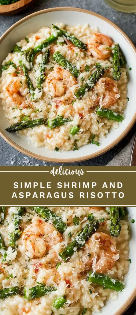 This Simple Shrimp and Asparagus Risotto is a creamy, flavorful rice dish made with tender arborio rice, fresh asparagus, and jumbo shrimp. Cooked slowly with warm chicken stock and finished with Parmesan, this easy risotto is perfect for weeknight meals, seafood dinners, or special occasions. It delivers a rich texture, balanced flavors, and a reliable method for achieving classic Italian-style risotto at home.