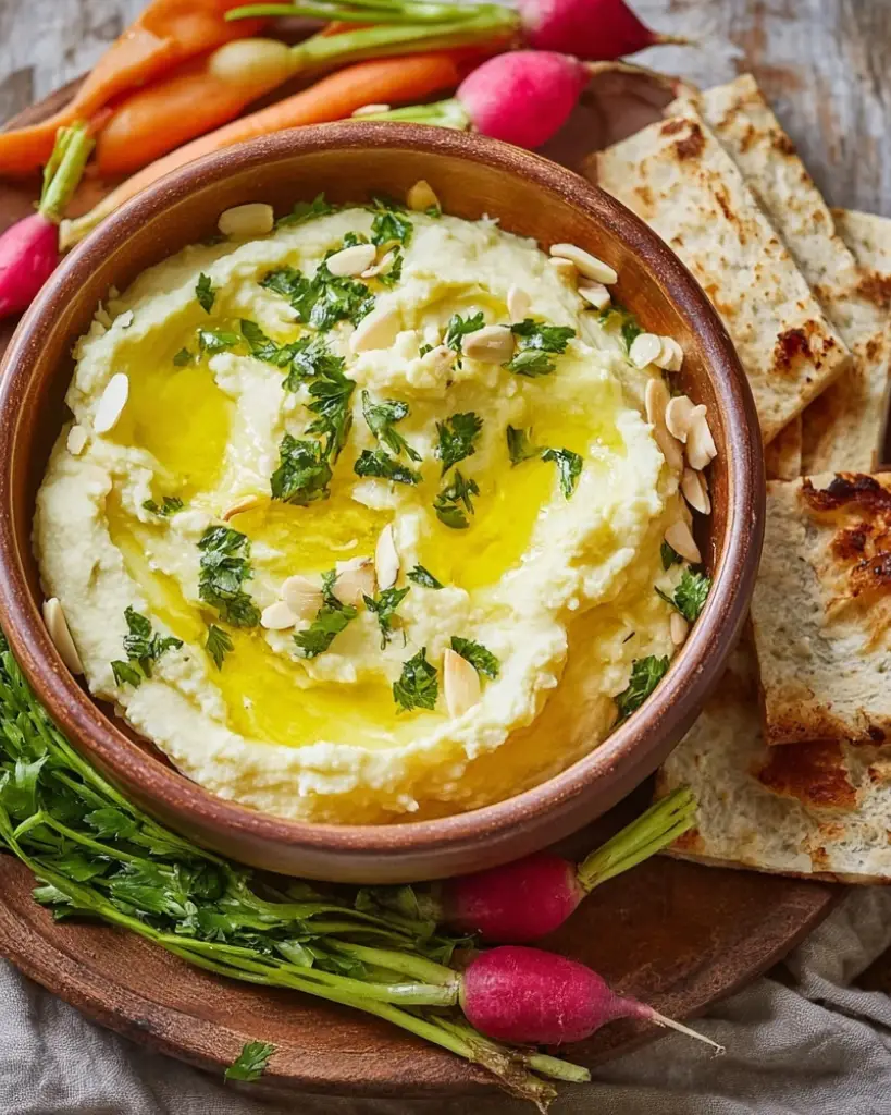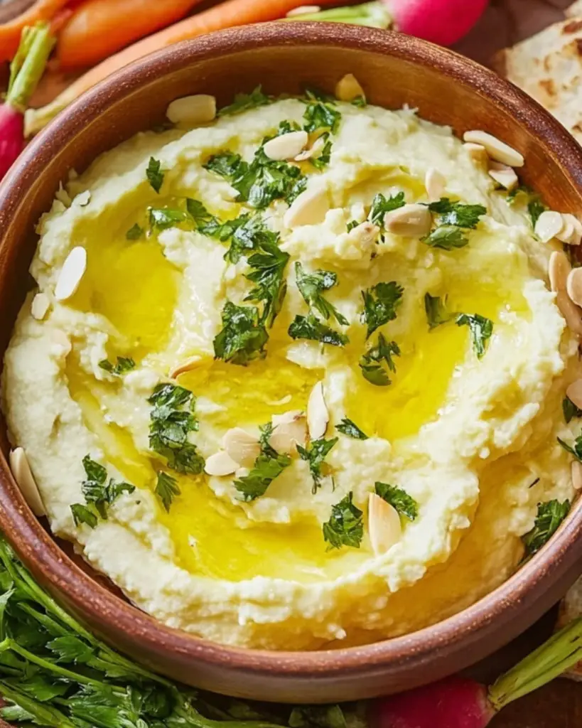 Skordalia is a creamy, garlicky Greek dip with a rich almond base and bright lemon flavor. Its smooth texture, balanced acidity, and nutty undertones make it a versatile dish that pairs beautifully with vegetables, bread, or roasted dishes. Simple to prepare, yet bursting with authentic Mediterranean flavor.
