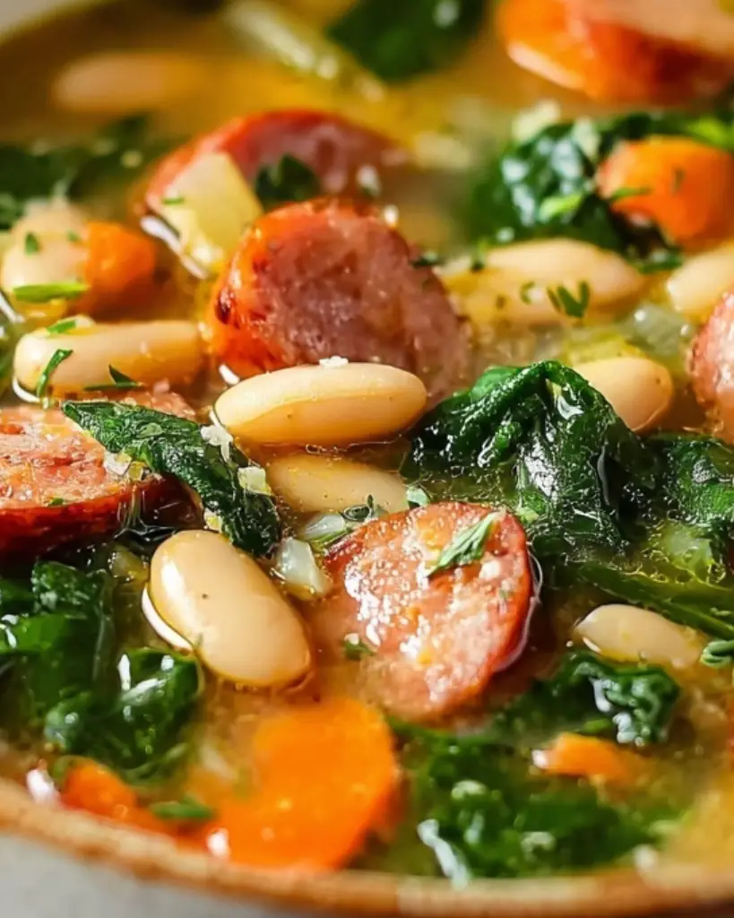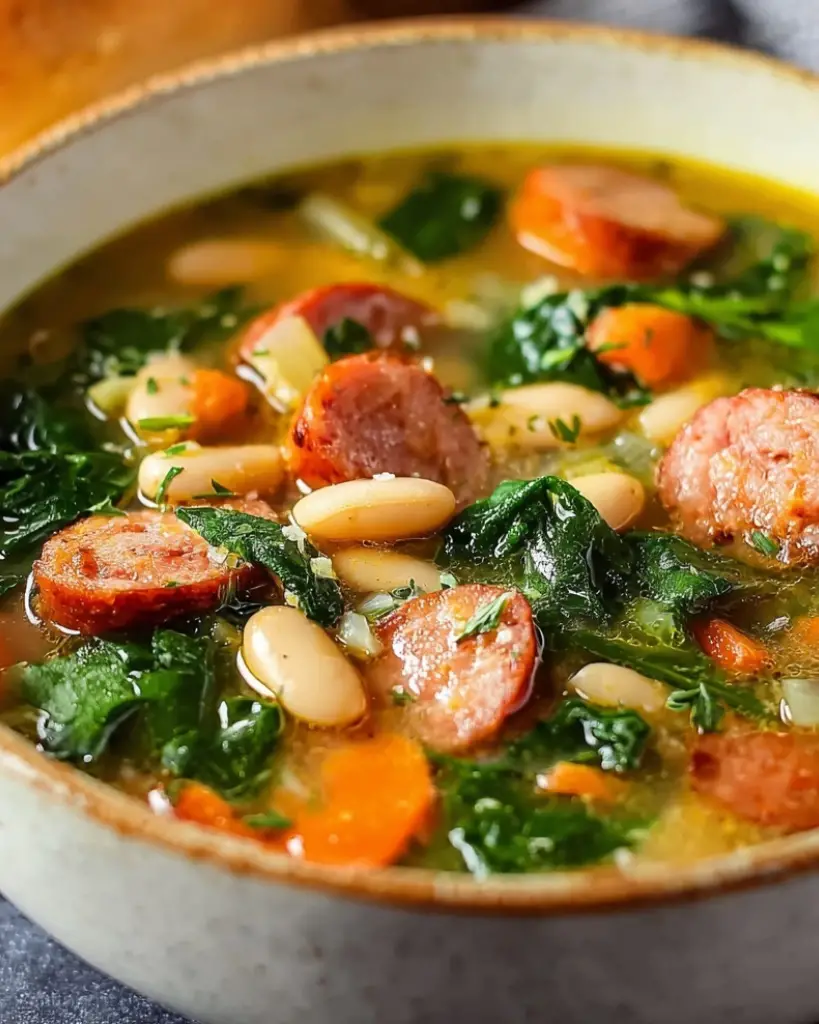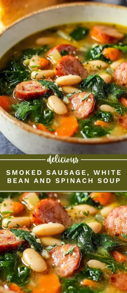 This Smoked Sausage, White Bean and Spinach Soup is a hearty, flavorful recipe made with tender vegetables, savory kielbasa, and protein-rich beans simmered in a comforting chicken broth. It’s an easy weeknight meal packed with nutritious ingredients, perfect for cold-weather dinners, family meals, and meal prep. With simple preparation, rich aroma, and wholesome ingredients, this soup is a great option for anyone looking for a warming, satisfying, and high-protein one-pot recipe.