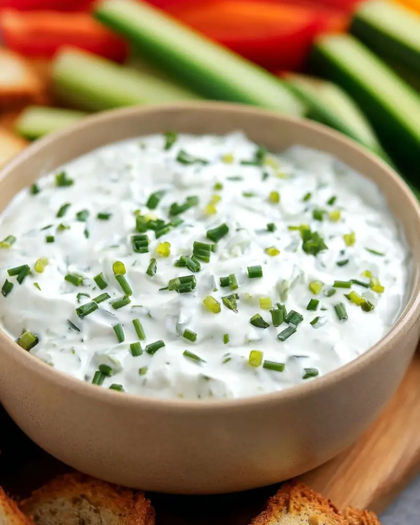 This sour cream and chive dip is a classic homemade appetizer made with fresh chives, green onions, and simple pantry ingredients. Creamy, flavorful, and easy to prepare, it’s perfect for serving with chips, crackers, or fresh vegetables. Ideal for parties, game day, or casual gatherings, this make-ahead dip tastes even better after chilling.