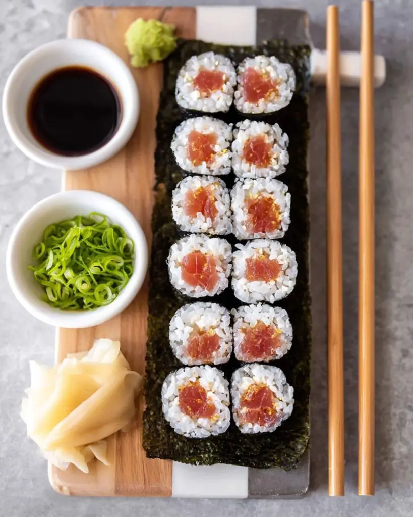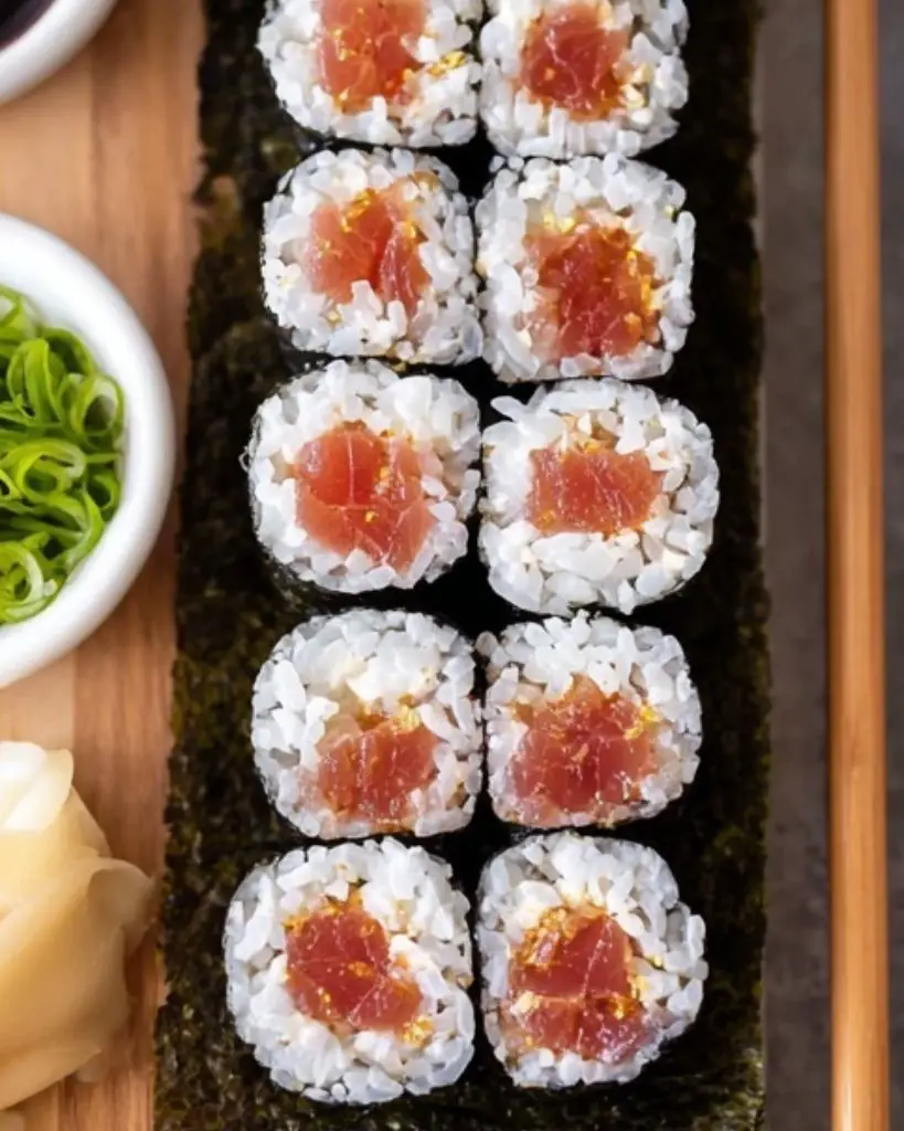 Make fresh and flavorful spicy tuna rolls at home with sushi-grade tuna, creamy Japanese mayo, and a kick of Sriracha. This easy sushi roll recipe shows how to prepare nori, sushi rice, and spicy tuna filling for perfect homemade sushi. Serve with soy sauce, wasabi, and pickled ginger for a restaurant-style sushi night.