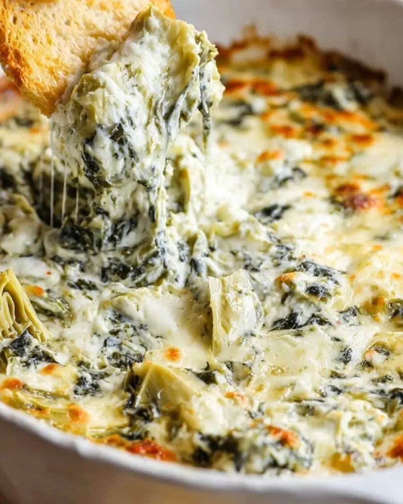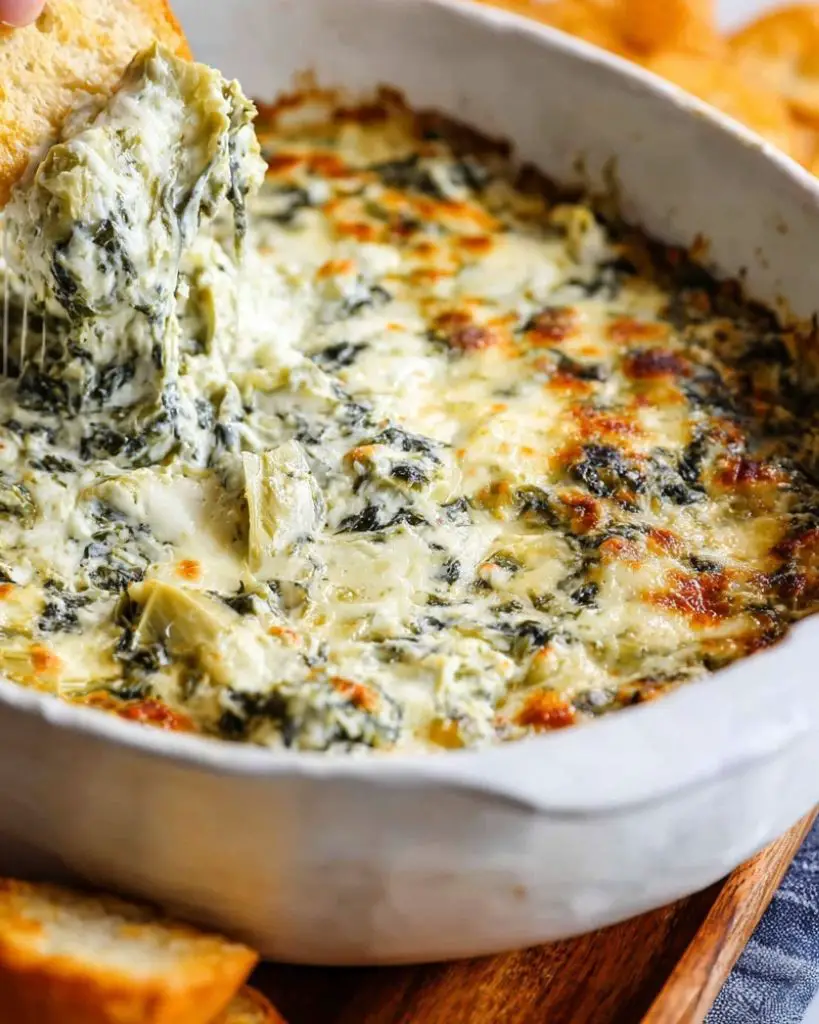 This spinach artichoke dip is a creamy, cheesy appetizer made with cream cheese, parmesan, spinach, and tender artichoke hearts. Baked until hot and bubbly, it’s the perfect party dip to serve with bread, crackers, or fresh vegetables. Quick to prepare and always a crowd favorite, this easy recipe is ideal for game day, potlucks, or family gatherings.