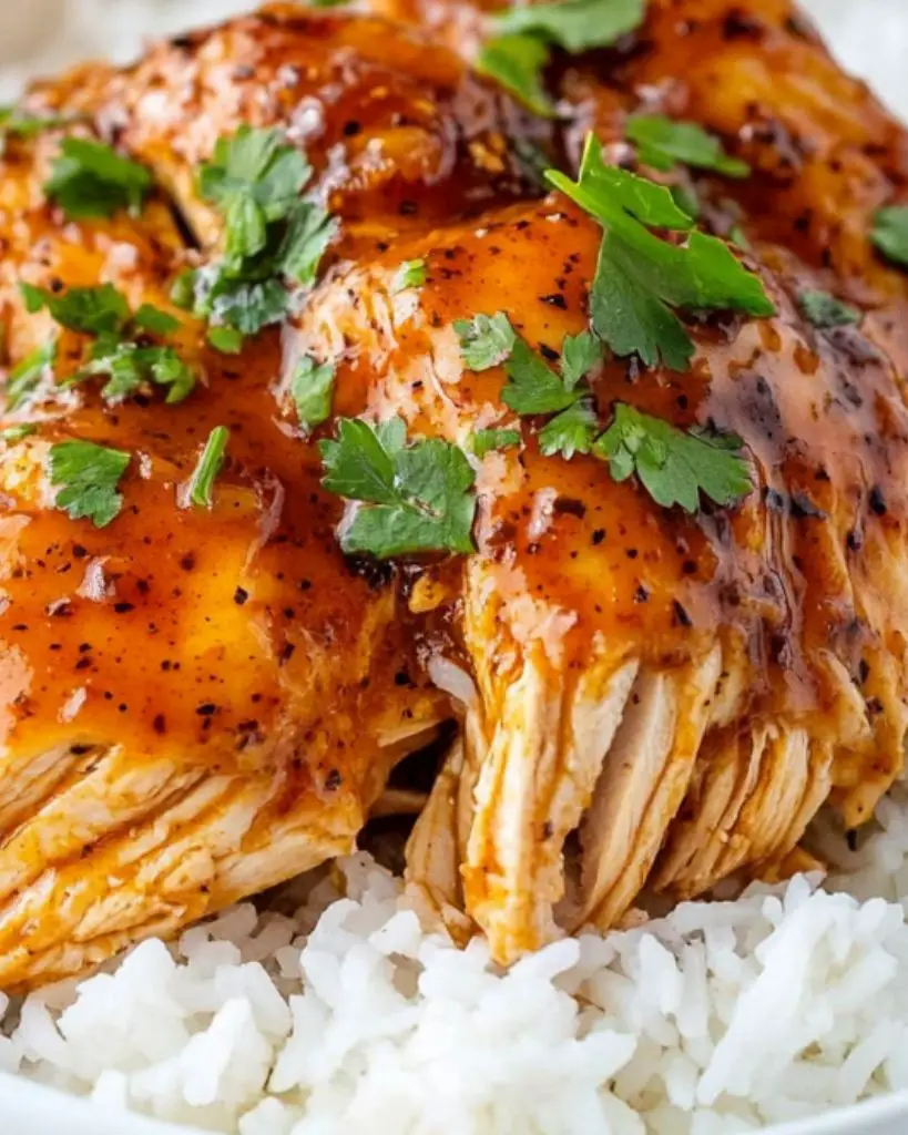 - Once done, remove the chicken from the oven. Use two forks to shred the chicken. The meat will absorb the sauce, becoming ultra-tender and flavorful.