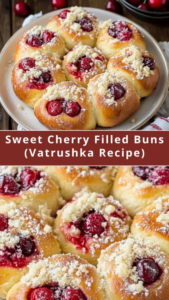 These Sweet Cherry Filled Buns (Vatrushka) are a perfect balance of soft, fluffy dough, tart-sweet cherries, and a buttery, crumbly topping. They are easy to make, wonderfully fragrant, and incredibly delicious, making them the perfect choice for any occasion. Whether you’re looking for a breakfast treat or an after-dinner dessert, these cherry buns will impress your friends and family with their flavor and texture!