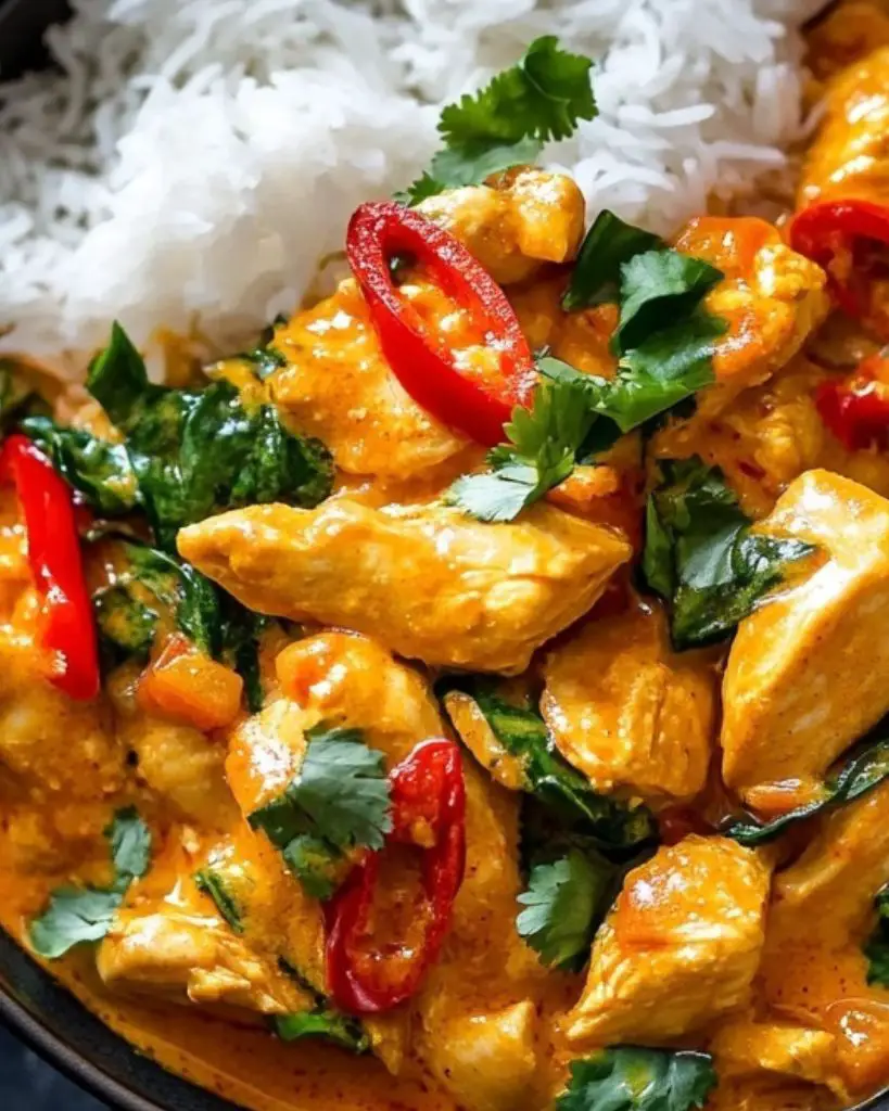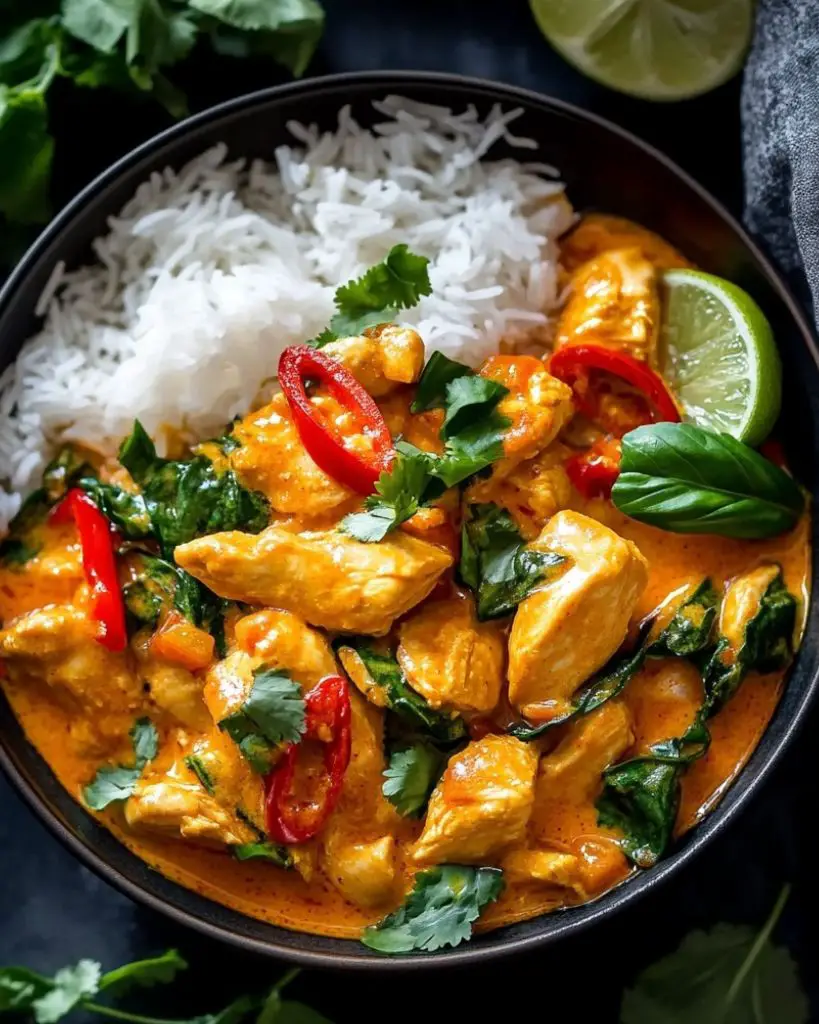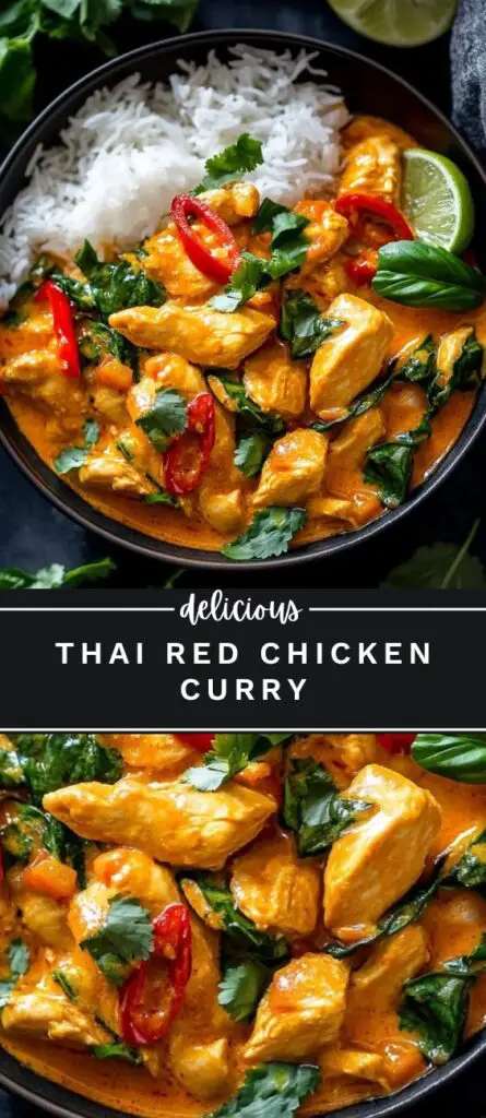 Thai red chicken curry is a quick and easy dinner recipe packed with bold flavour. Made with red curry paste, tender chicken, coconut milk, and Thai basil, this creamy curry is ready in under 30 minutes. Serve with jasmine rice for a simple and authentic Thai-inspired meal at home.