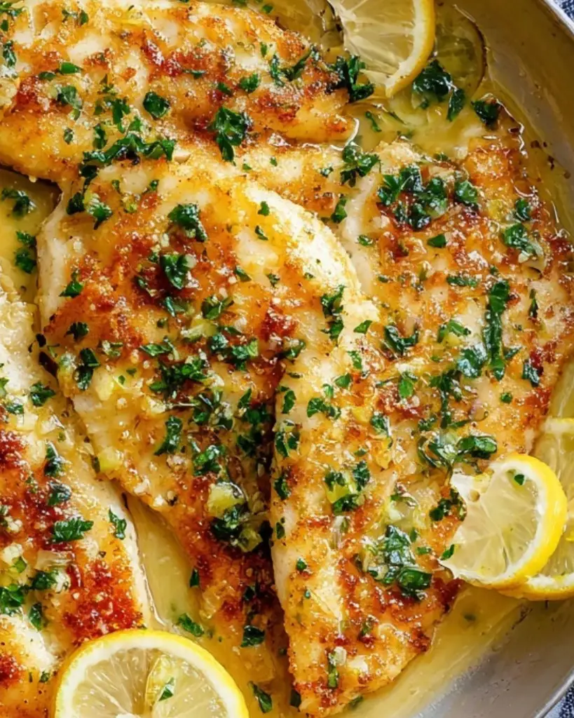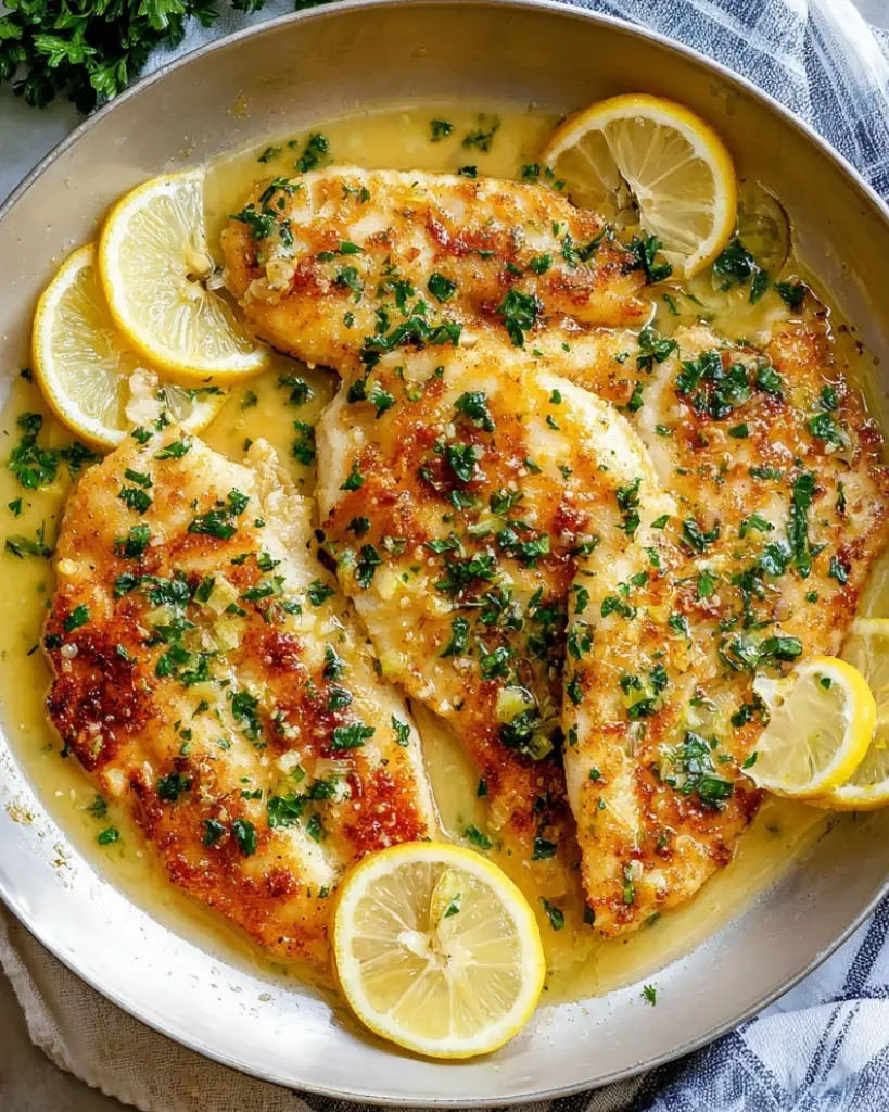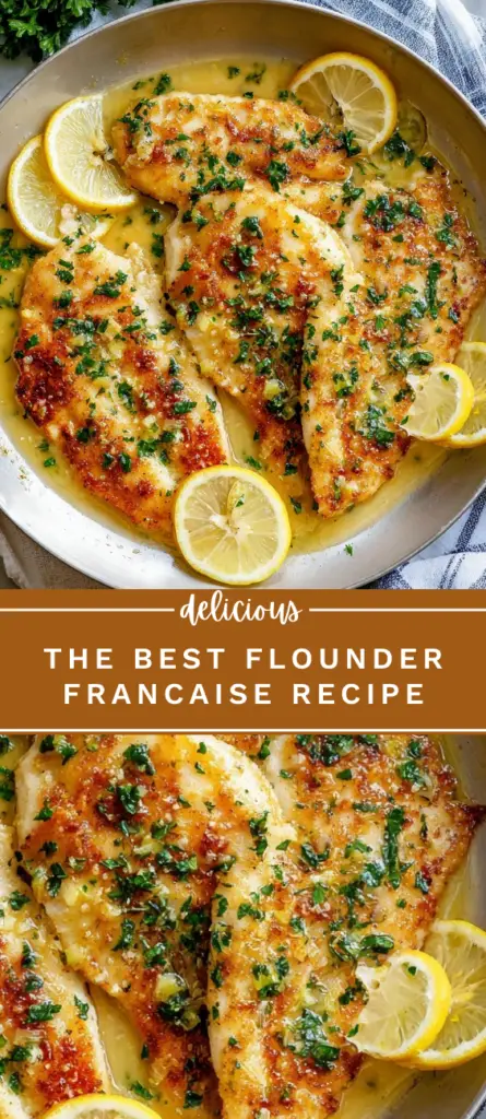 Flounder Francaise is a classic Italian-American seafood recipe featuring tender flounder fillets lightly coated in flour and egg, then pan-fried until golden and topped with a rich lemon butter sauce. Made with fresh lemon juice, garlic, white wine or stock, and parsley, this easy fish dinner is perfect for weeknight meals or special occasions. Serve with pasta, rice, or vegetables for a restaurant-quality dish at home.