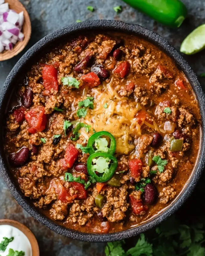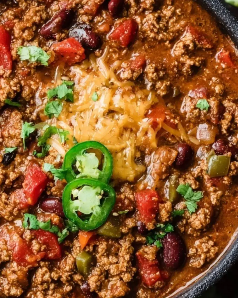- Spice level: Add jalapeños or extra chili powder for more heat, or reduce for a milder chili.