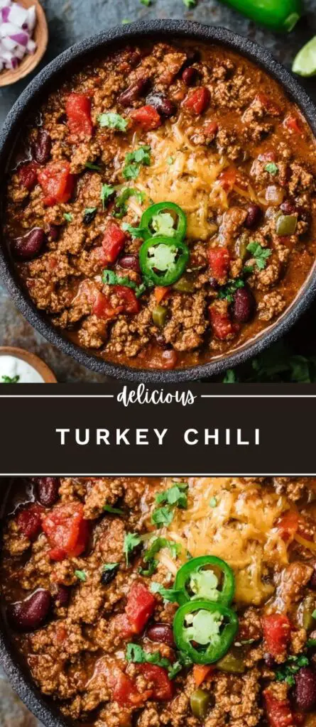 This hearty turkey chili recipe is made with lean ground turkey, beans, tomatoes, and warm spices for a flavorful one-pot meal. Perfect for weeknight dinners, meal prep, or game day, this easy chili is protein-packed, comforting, and customizable with your favorite toppings.