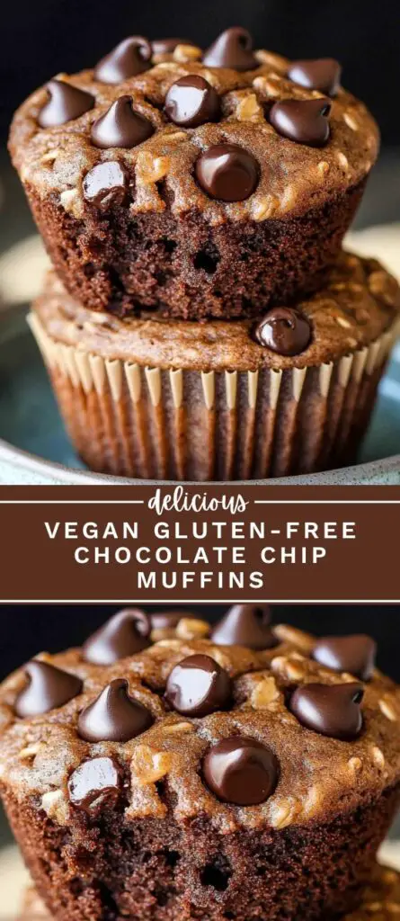 Moist, chocolatey, and naturally sweetened, these vegan and gluten-free chocolate chip muffins are perfect for a wholesome snack or a delicious breakfast treat.