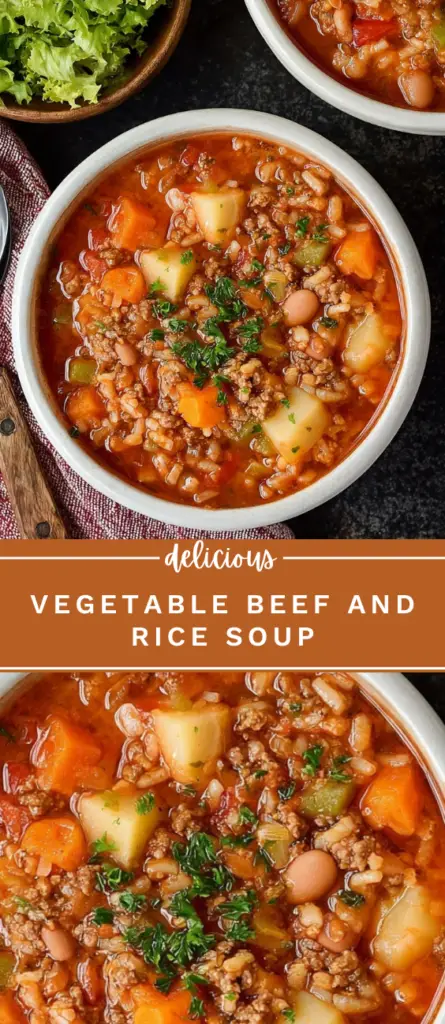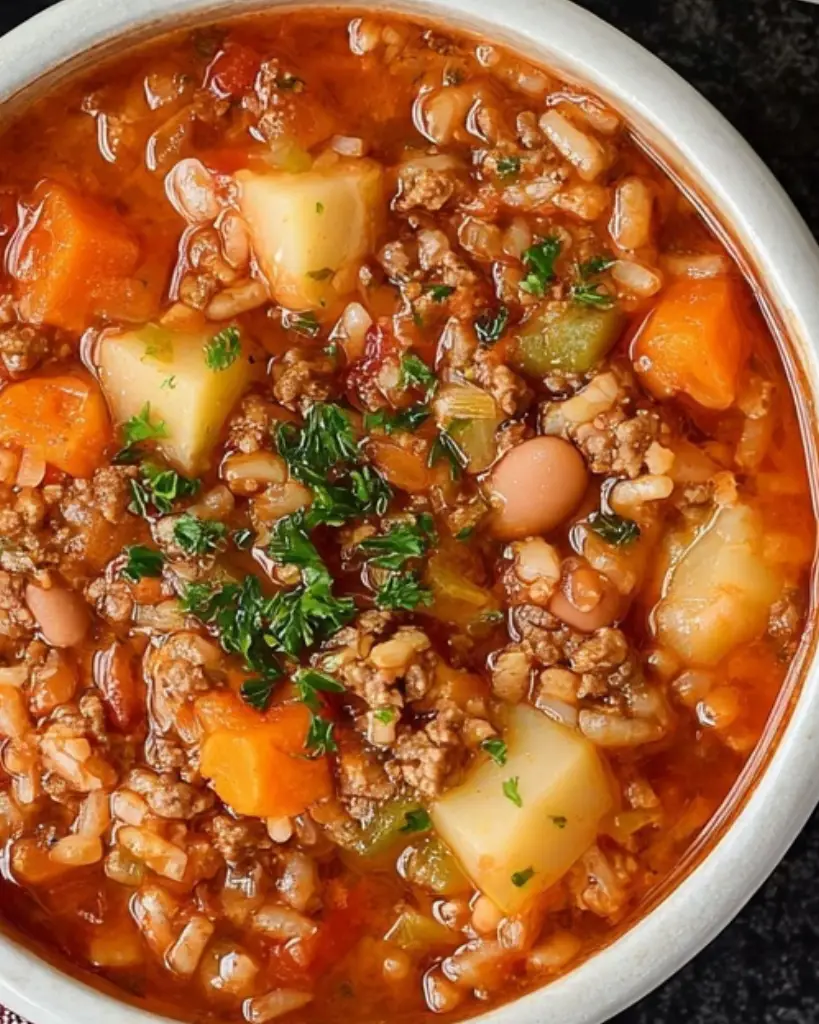 This vegetable beef and rice soup is a hearty homemade recipe made with lean ground beef, rice, potatoes, beans, and vegetables simmered in a rich tomato-based broth. Perfect for family dinners, meal prep, or cold-weather meals, this filling soup is easy to make, freezer-friendly, and naturally gluten-free when prepared with gluten-free broth.