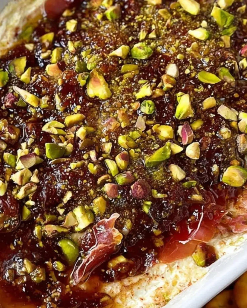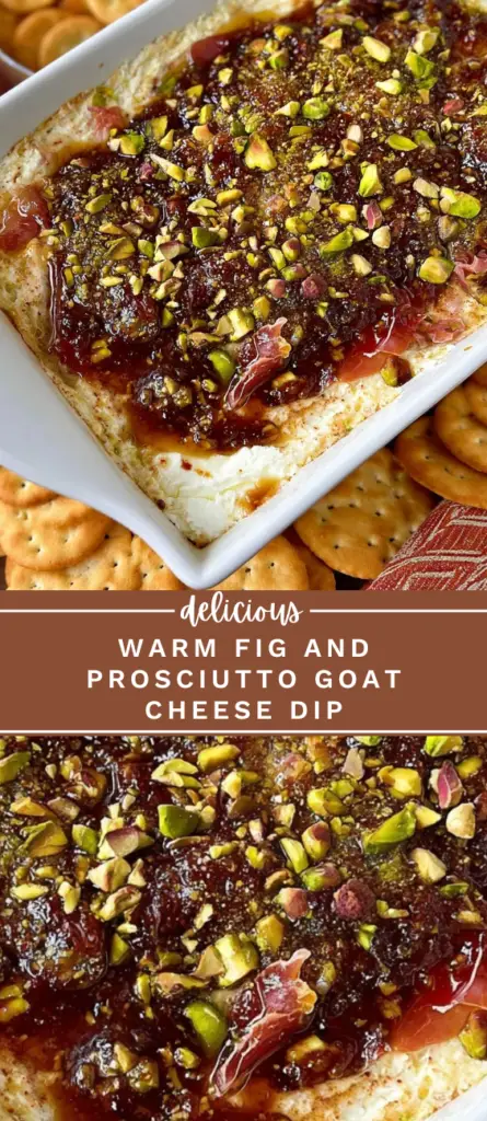 This warm goat cheese dip combines creamy cheeses, salty prosciutto, sweet fig jam, and crunchy pistachios for a balanced appetizer that works well for parties, holidays, or casual gatherings.